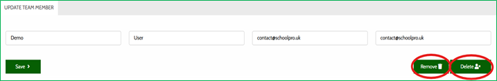 If you want to move a member of staff from one classroom to another, add them to the new classroom using the ‘Team Member already exists?’ option, before ‘Removing’ them from their old classroom. You do this by selecting ‘Edit’ next to the user’s name in ‘Team Members’ and selecting ‘Remove‘. Please do not click ‘Remove’ if they are not part of another group yet, as this will mean you’ll get an error message when you try and add them elsewhere.