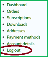 2 Scroll to almost the very bottom of the page and you will see a bullet-pointed list of green links. Select “log out”.