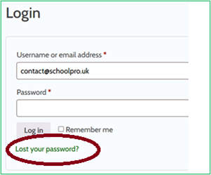 Go to www.schoolpro.uk/my-account and enter your username (usually your email address) and password. These credentials are provided in your ‘Welcome’ email from SchoolPro, from the email address contact@schoolpro.uk.
